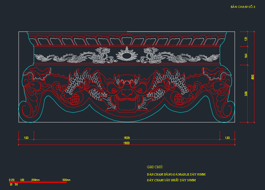 Chi tiết 5: Bản chạm rồng bằng đá – file cad rồng phượng