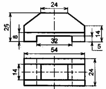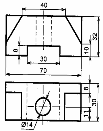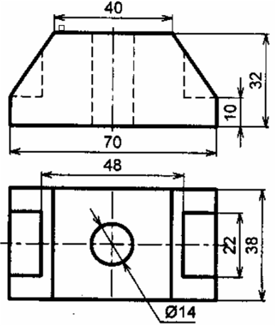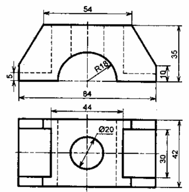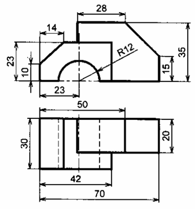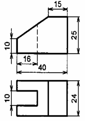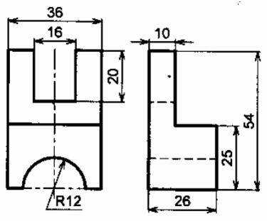 Cho vật thể được biểu diễn bằng hai hình chiếu như hình vẽ, hãy vẽ mặt cắt đứng của vật thể.