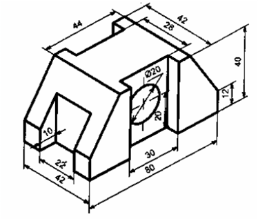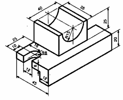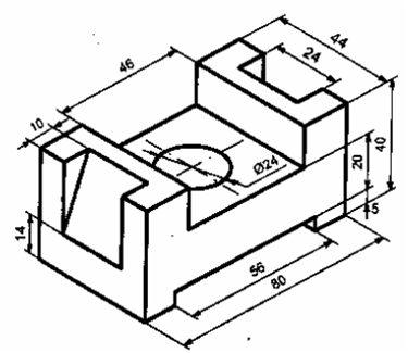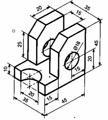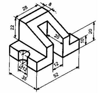 Cho vật thể như hình vẽ, hãy vẽ ba hình chiếu của vật thể.