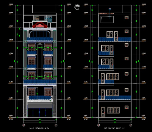 Bản vẽ thiết kế nhà phố 7 tầng kích thước 8x18m (có file excel tính toán cột và tải trọng theo tiêu chuẩn mới)