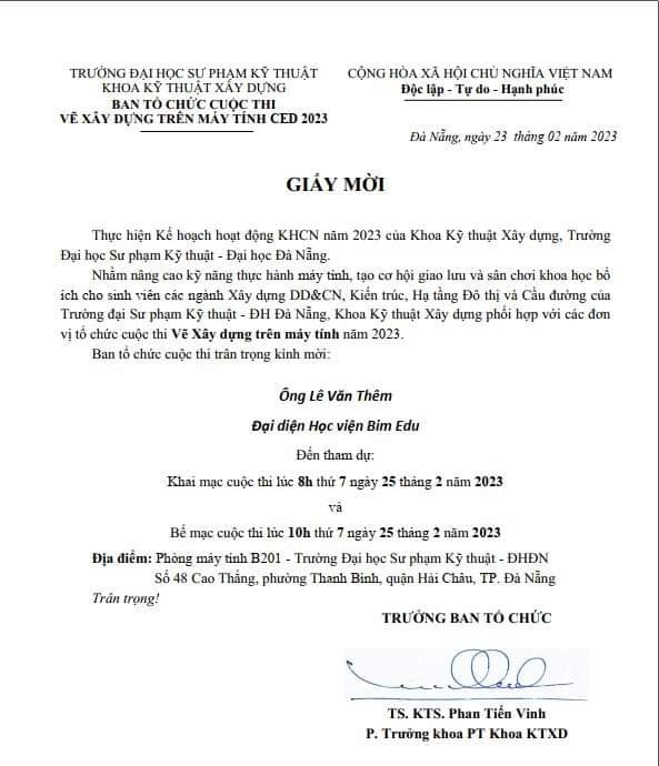 BIM Edu tham gia giám khảo Cuộc thi autocad tại Đại Học Sư Phạm kỹ thuật Đà Nẵng