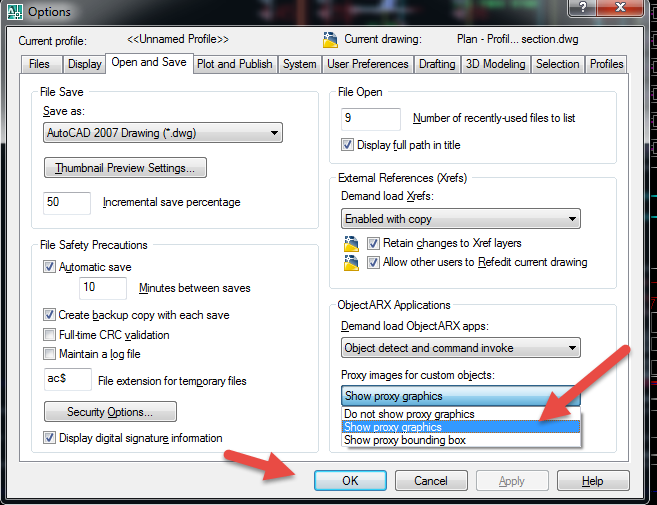 Bạn bật autocad file đường thiết kế lên, gọi lệnh OP và chọn như hình sau đó Ok và gõ lệnh RE cho tươi lại bản vẽ!