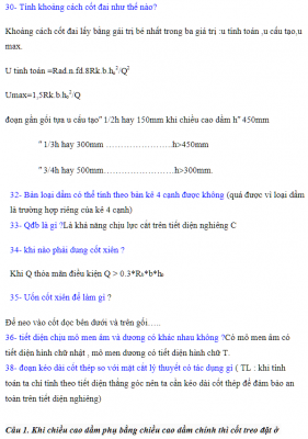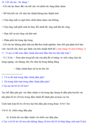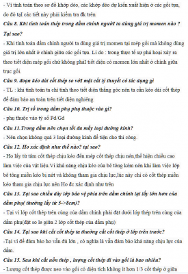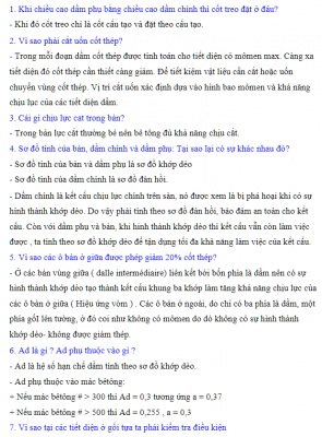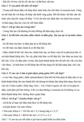 Câu hỏi kèm đáp án bảo vệ đồ án Bê tông cốt thép 1