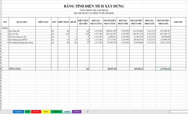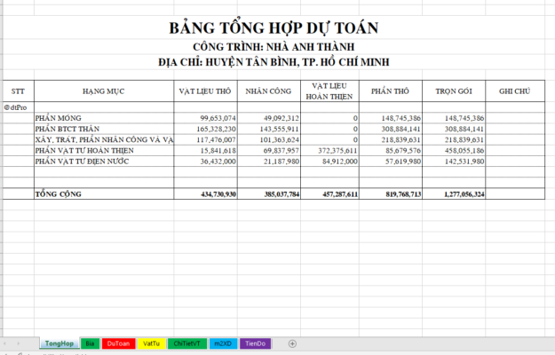 Chia sẽ file mẫu dự toán nhà dân- nhà phố miễn phí