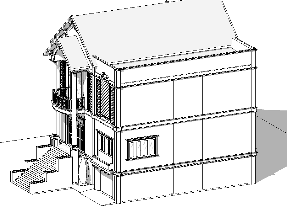 Chia sẽ miễn hồ sơ kiến trúc nhà 3 tầng Revit 10X12 m miễn phí