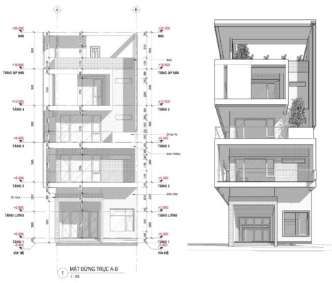 Chia sẽ miễn phí hồ sơ nhà phố 5 tầng file Revit