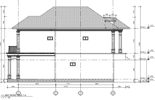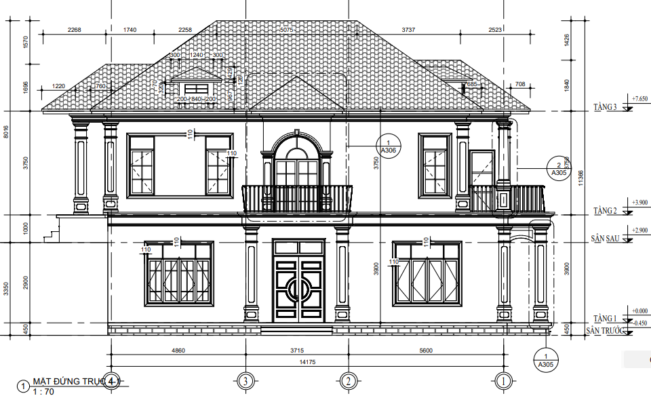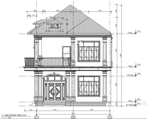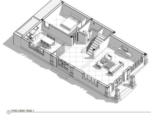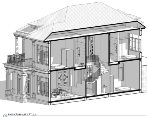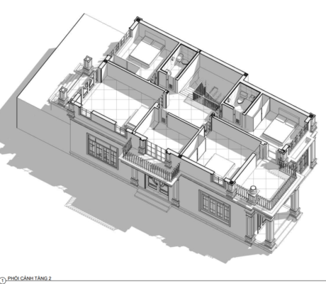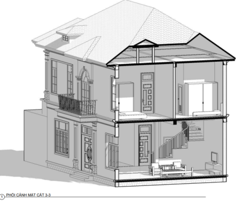 Chia sẽ miễn phí hồ sơ thiết kế biệt thự 2 tầng 8x14m tân cổ điển file Revit