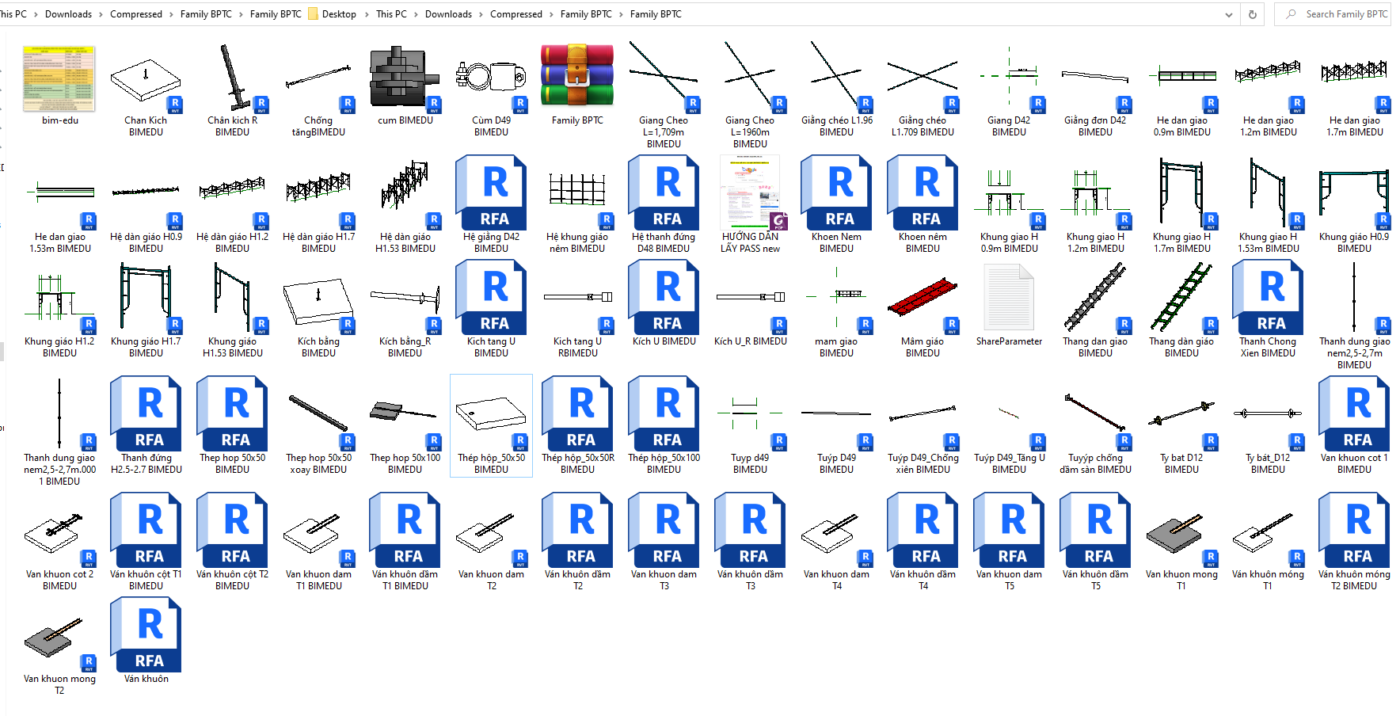 LINK TẢI file thư viện biện pháp thi công Revit đầy đủ: Tại đây