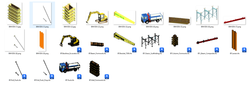 Thư viện coppha, giàn giáo, nêm, chống, máy móc, xe Revit