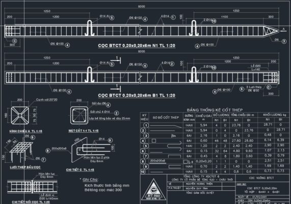 Chia sẽ miễn phí bản vẽ thiết kế cọc BTCT định hình cọc full kích thước từ 200 -500 nhà máy đúc sẵn
