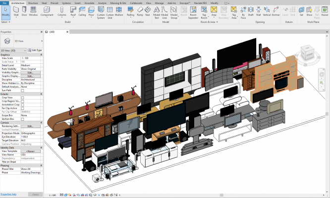 Thư viện kệ tivi Revit mới nhất 2023 Thư viện Revit bàn ghế văn phòng...