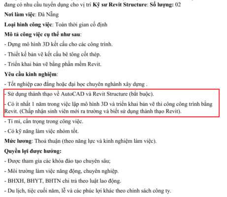 Tuyển dụng kỹ sư biết sử dụng Autocad Revit làm việc tại Đà Nẵng