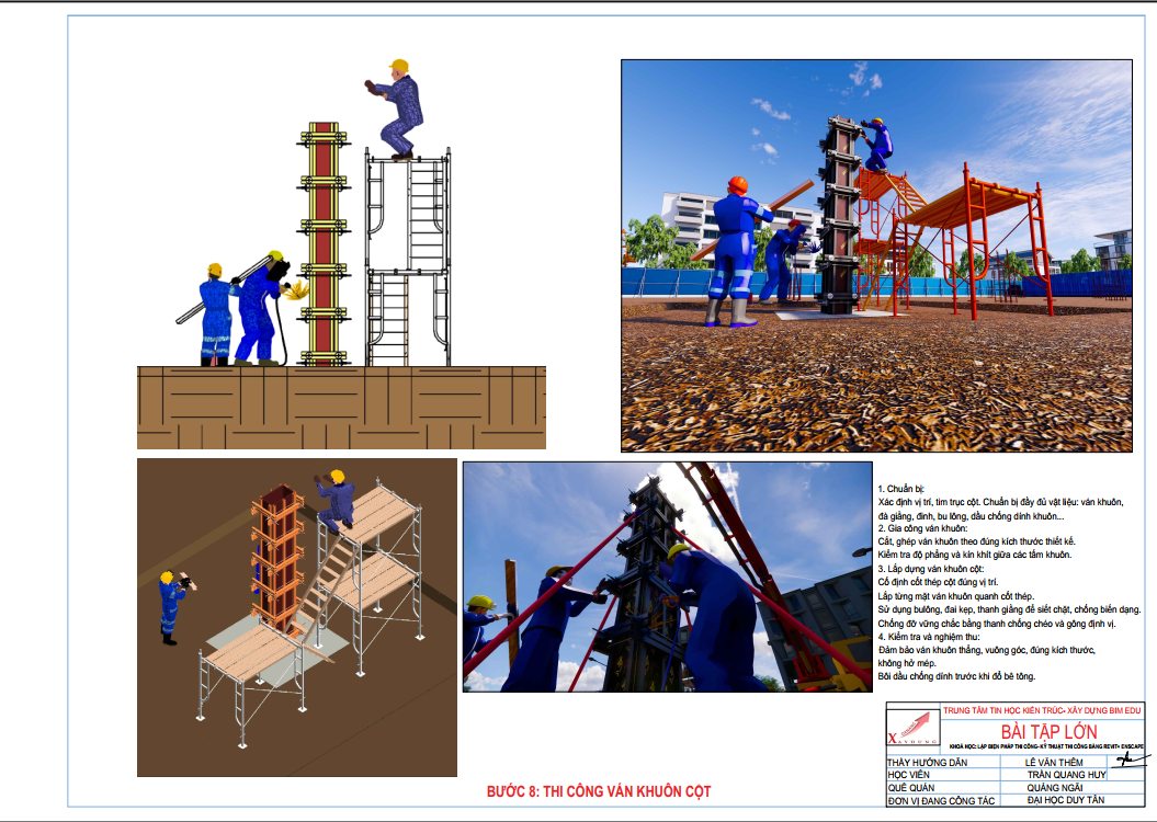 - Ứng dụng thực tế Revit vào lập biện pháp thi công công trình 100% thực tế.