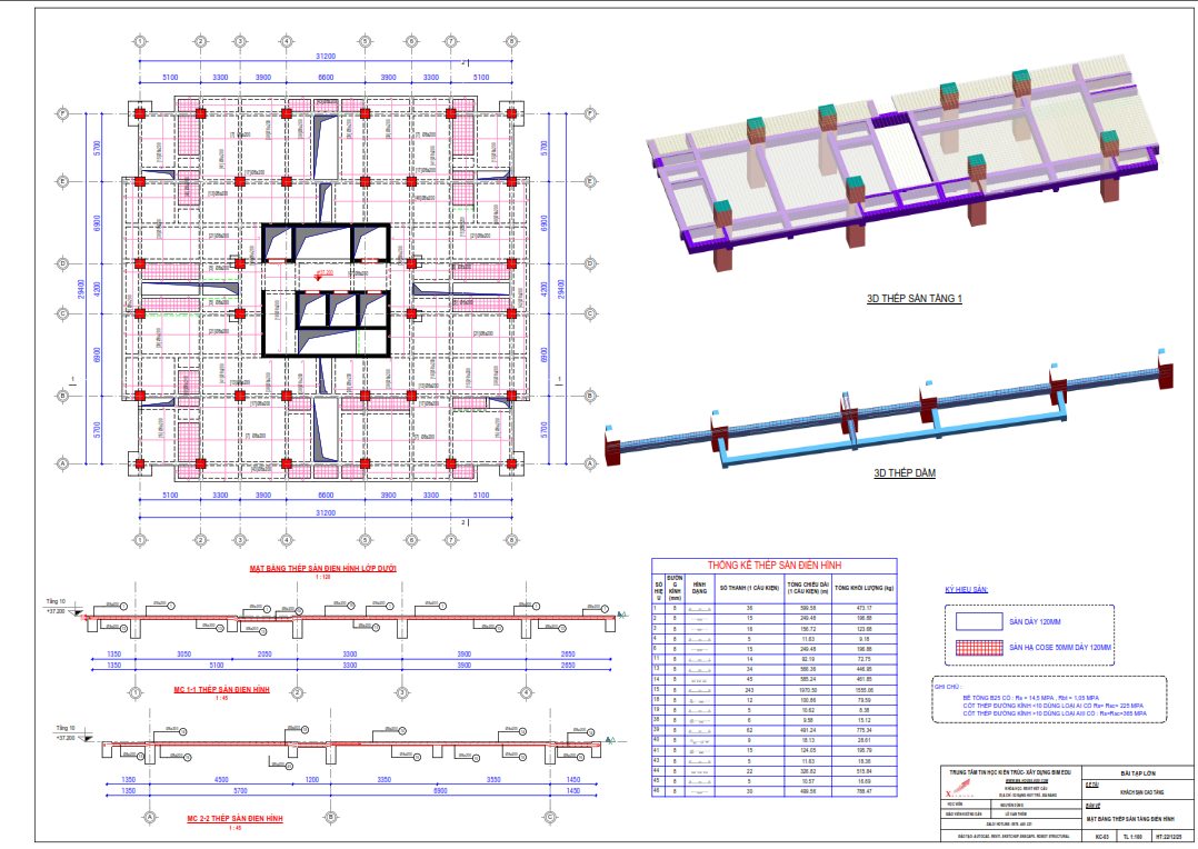 - Hướng dẫn triển khai bản vẽ 2D thép sàn từ mô hình 3D đúng TCVN