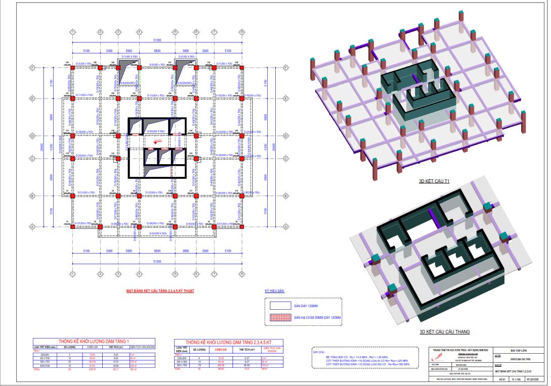 - Triển khai chi tiết mặt bằng kết cấu các tầng