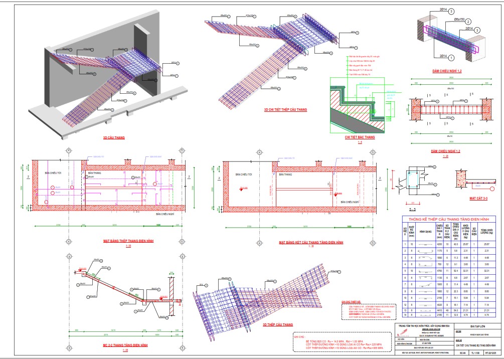 - Triển khai mặt bằng kết cấu chi tiết cầu thang