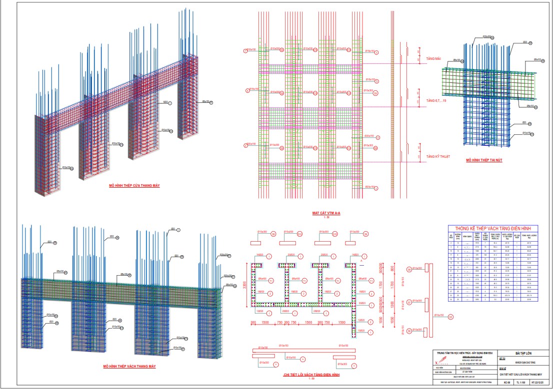 - Hiệu chỉnh nội dung khung tên, danh mục bản vẽ, bảng thống kê khối lượng (bê tông, cốt thép…)từ template hệ thống của Revit về đúng template theo đúng tiêu chuẩn công ty hoặc cá nhân