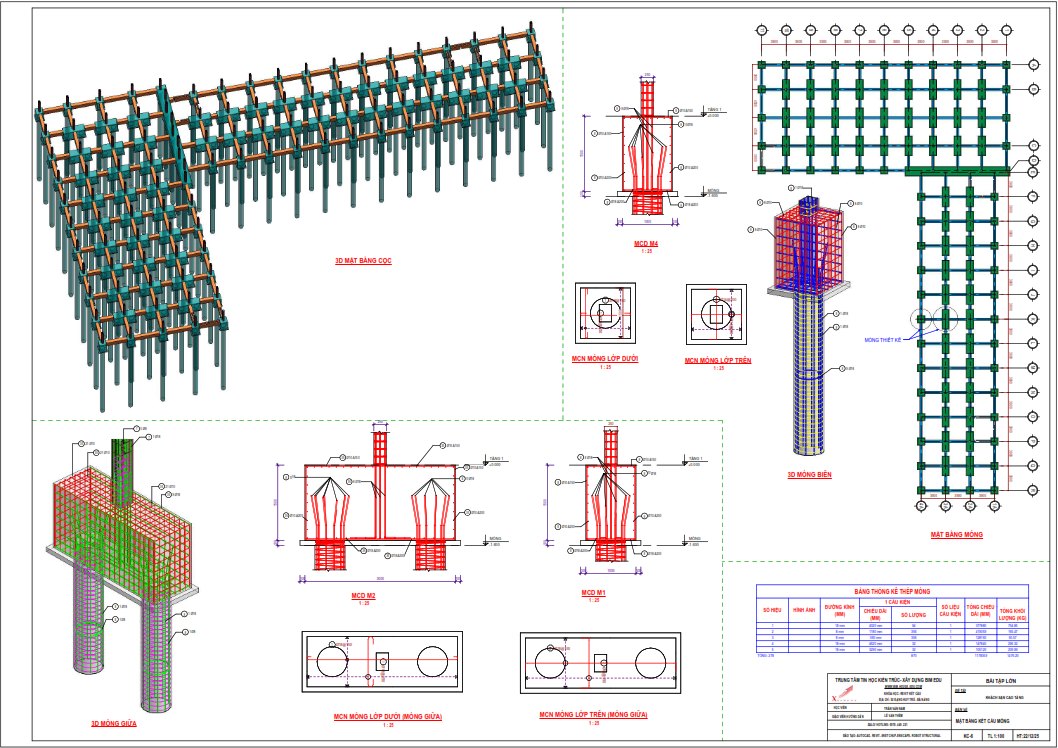 - Hướng dẫn triển khai bản vẽ 2D thép móng từ mô hình 3D đúng TCVN