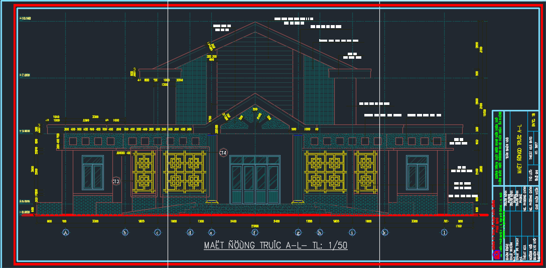 Đây là file cad thiết kế, thi công chi tiết, đầy đủ từng chi tiết thiết kế nhất mà bạn từng thấy. Trong file cad này các bạn sẽ thấy các mặt đứng, mặt bằng, và các mặt cắt sẽ cho các bạn thấy chi tiết thiết kế kiến trúc của nhà văn hóa. Ngoài ra còn có cả bản vẽ thi công và bảng thống kê cốt thép chi tiết. Giúp các bạn thống kê được số lượng cốt thép dùng trong công trình này. Sau đây là một số hình ảnh của bản thiết kế để các bạn chiêm ngưỡng vẻ đẹp của công trình nhà văn hóa.