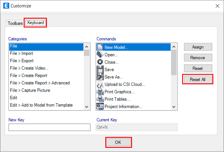 Chọn Tab Keyboard/Chọn Reset All. Click OK