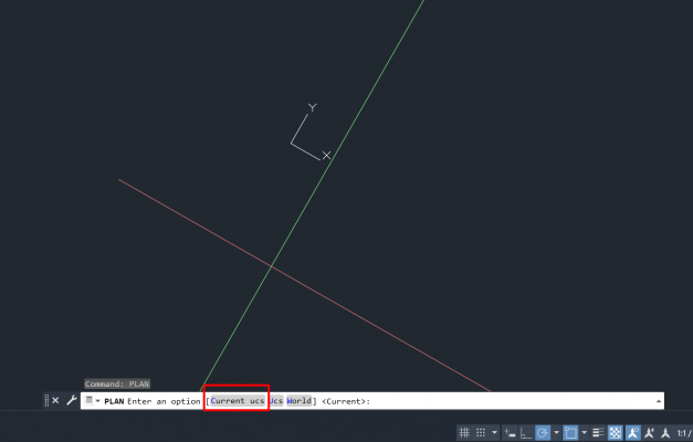 Chọn current ucs để khôi phục con trỏ chuột bị nghiêng.