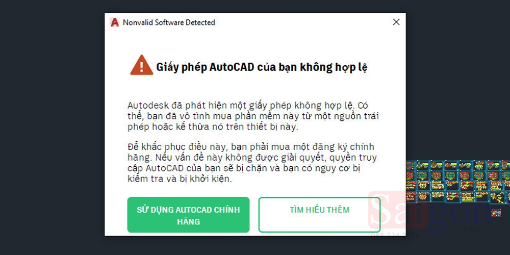Nguyên nhân chủ yếu gây ra lỗi “Giấy phép AutoCAD của bạn không hợp lệ” hoặc “Sau ngày hôm nay, bạn sẽ mất quyền truy cập AutoCAD” là do phiên bản phần mềm của bạn không được đăng ký bản quyền và bị AutoDesk quét được. Một số trường hợp khác có thể do trong quá trình sử dụng bạn vô tình Update lên phiên bản mới của phần mềm. Lỗi này có thể xảy ra trên tất cả các phầm mềm của AutoDesk như: Revit3ds MaxMaya, InventorFusion 360,… chứ không riêng gì AutoCAD.