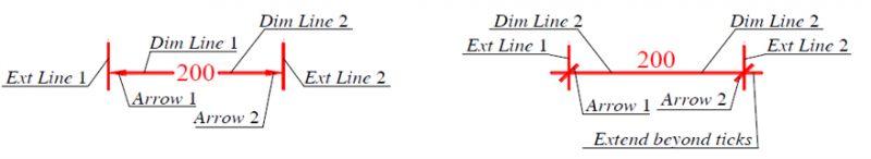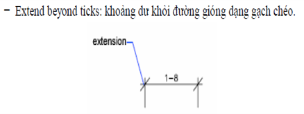 - Extend boyond ticks: Khoảng nhô của đường kích thước so với đường gióng kích thước.