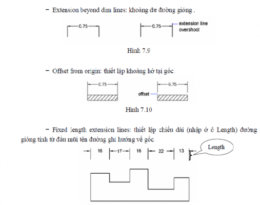 - Fixed length extension lines: Nếu click vào ô này sẽ kích hoạt ô “Length” để chúng ta điền chiều dài cố định của đướng gióng kích thước