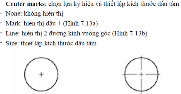 Center marks: Ký hiệu tâm đường tròn, cung tròn