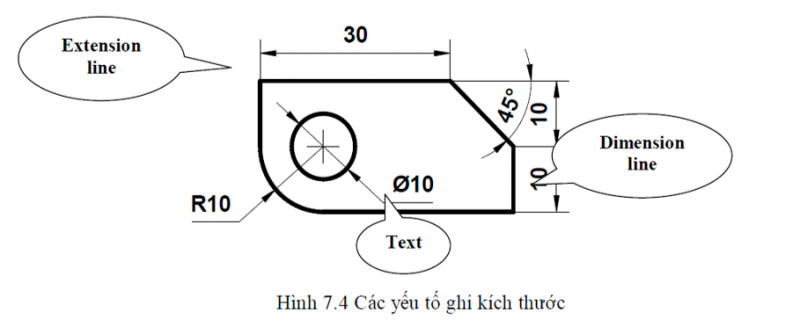 - Extension lines: Nhóm đường gióng kích thước (Là đường thẳng đứng trên hình)