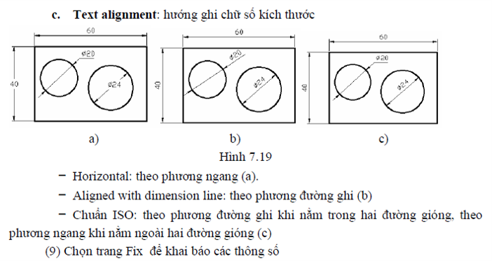 - Aligned with dimension line: Text luôn có phương song song với đường kích thước.