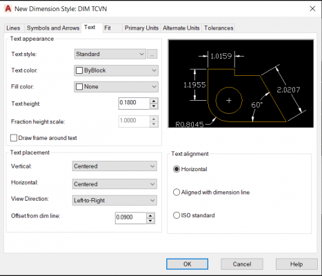 - Horizontal: Text luôn có phương nằm ngang cho dù đường dim cho phương chiều như thế nào đi chăng nữa