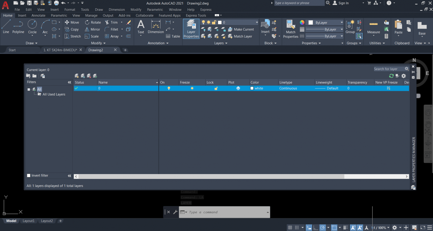 Để gọi bảng quản lý layer chúng ta sử dụng lệnh tắt là: LA => Enter