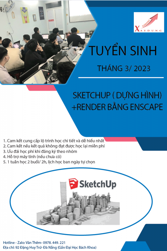 Tuyển sinh Khóa học SKETCHUP dựng hình, Render bằng ENSCAPE tháng 3/2023.